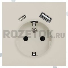 Розетка электрическая 16 А / 250 В с 2 USB A+C - для зарядки мобильных устройств, лен