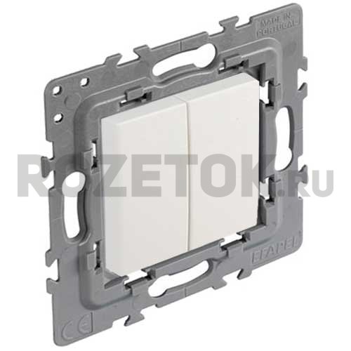 Выключатель двухклавишный, перекрёстный (вкл/выкл с 3-х мест) 10 А / 250 В, белый