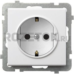 Розетка с заземлением "Shuko" скрытой установки, контакты винтовые. 250V, 16A, IP-20, белый матовый, GP-1RS/m/75