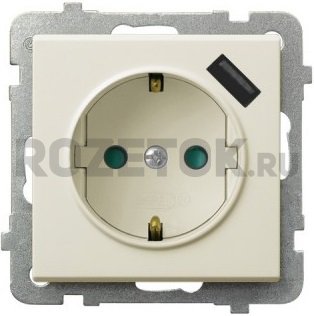Розетка с заземлением «Shuko» со шторками 16А + зарядка USB 2,1А , скрытой установки, контакты самозажимные. 250V, IP-20, светло-бежевый, GP-1RSPUSB/m/27