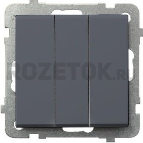Выключатель 3-клавишный. Контакты самозажимные. 250V, 10AX, IP-20., графит матовый, LP-13R/m/73