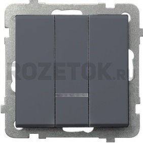 Выключатель 3-клавишный. Оранжевая подсветка. Контакты самозажимные. 250V, 10AX, IP-20., графит матовый, LP-13RS/m/73