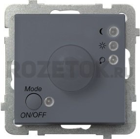 Датчик движения электронный. Контакты винтовые. 230V, IP-20. Угол 136 гр., дальность 7 м. Время: 3s-5min., графит матовый, LP-16R/m/73