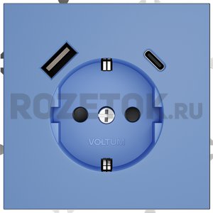 Цена 7 450 руб. в интернет-магазине Rozetok.ru на товар Voltum Розетка электрическая 16 А / 250 В с 2 USB A+C - для зарядки мобильных устройств, деним, является актуальной на 18.02.2026.